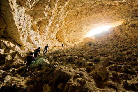 - يعتبر هذا الكهف احد أهم ما كونته هذه الظاهرة ،واحيانا يسبب الجبس توهجات ضوئية خفيفة تشبه ضوء القمر.