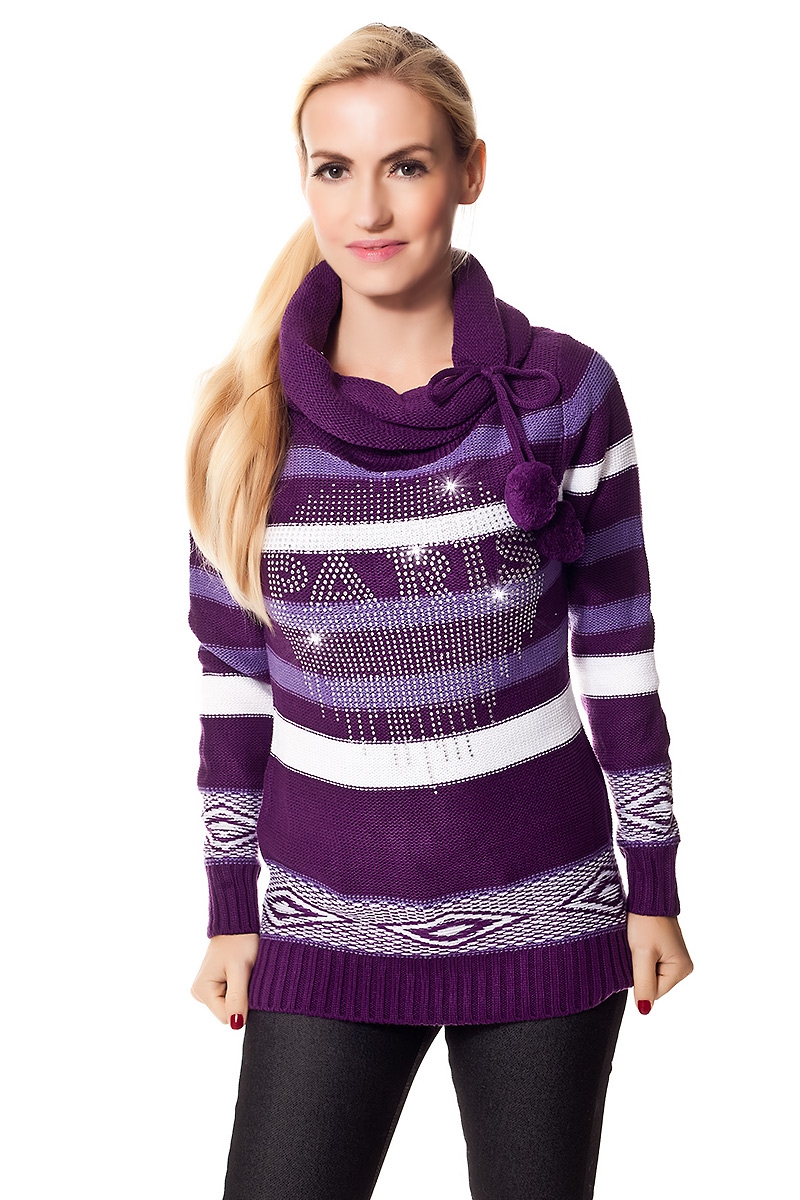 في عصرية جديدة ومع حلول فصل شتاء جديد نقدم لكم بلوفرات من اللون الموف المقلم بالابيض ومطرز من علي الصدر بحروف جميلة علي بناطل اسود غامق من الاسكيني كما ان البلوفر من علي الكم مقلم مابين اللون الابيض واللون الموف شاهدي اجمل صيحات موضة البنات سنة 2017 في شتاء منعم بالبرودة والثلوج